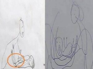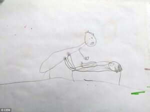 الذي شك بأن تلك الطفلة قد تكون تعرضت إلي الاعتدا..اء الجنسـ،ـي، وبعد ذلك الحديث طلب منهما الطبيب البحث في غرفتها للعثور على دليل يؤكد حديثه. رجعا إلي البيت وظل يبحثان على وجود دليل يؤكد تعرض ابنتهما للاعتدا..اء الجنسـ،ـي، وبالفعل عثرت الأم على رسومات تؤكد على المراحل التي تعرضت لها الطفلة أثناء الاعتدا..اء، واختصرت الطفلة صورة يخرج رجل على طفلة ويظهر على ملامح الطفلة الخوف والرعب.